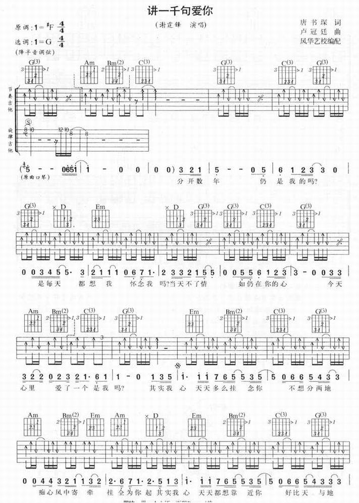>> 讲一千句爱你-谢霆锋(吉他谱)