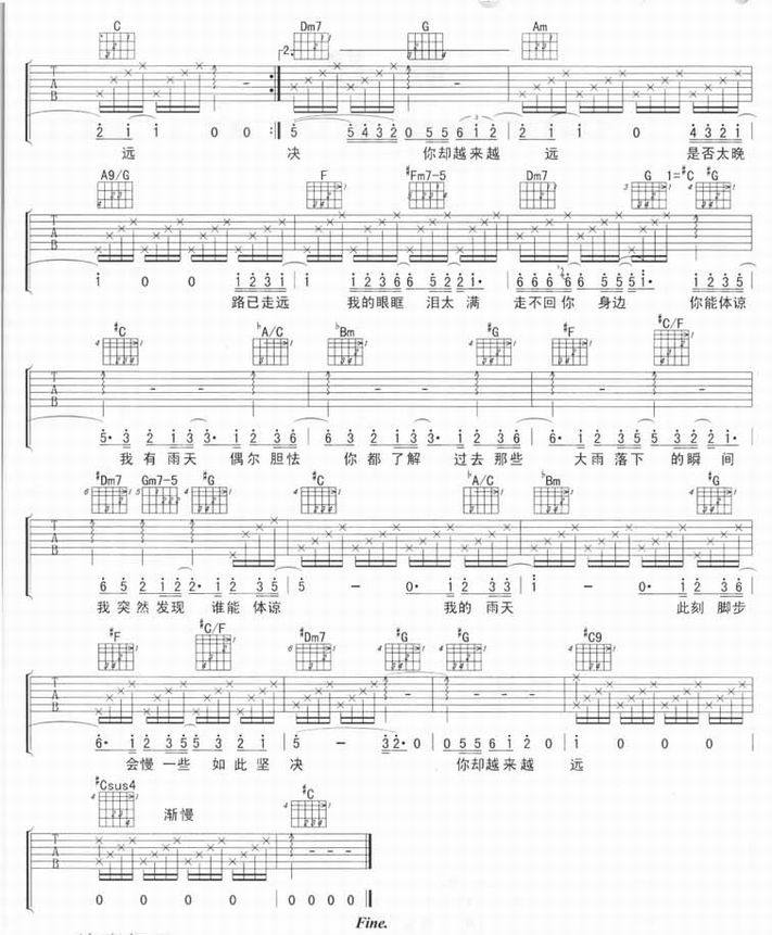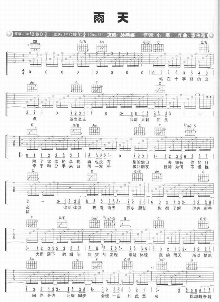 雨天-孙燕姿(吉他谱 吉他曲谱 吉他六线谱 吉他歌谱 吉它谱 影视吉他谱)
