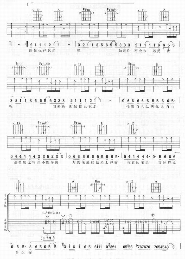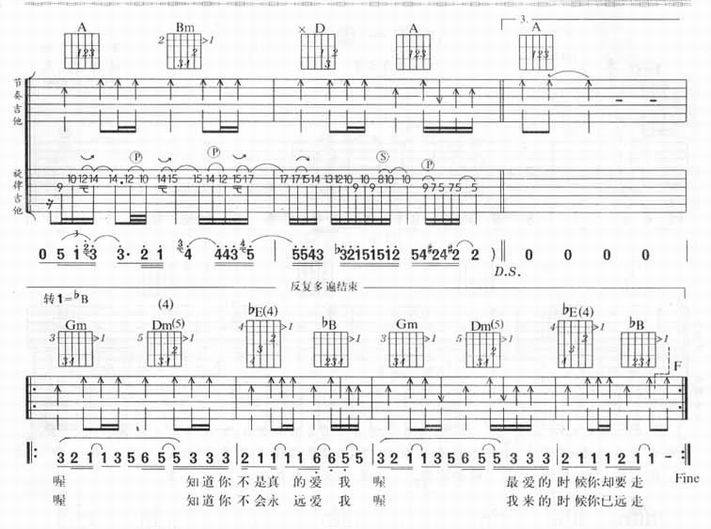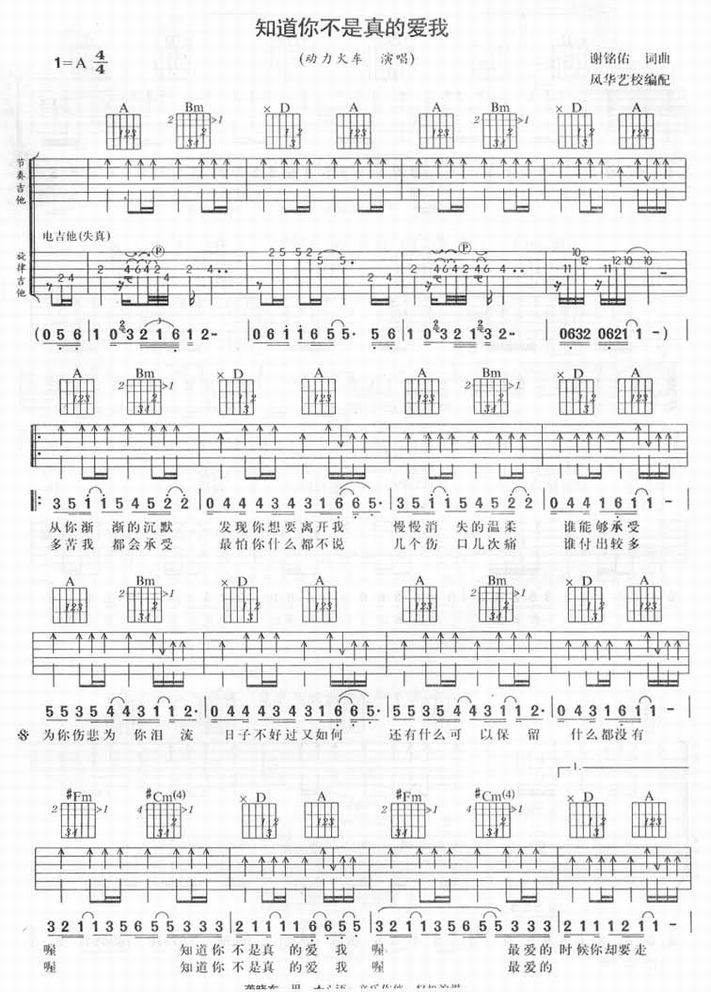 知道你不是真的爱我-动力火车(吉他谱 吉他曲谱 吉他六线谱 吉他歌谱 吉它谱 影视吉他谱)
