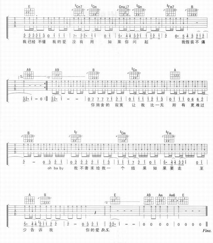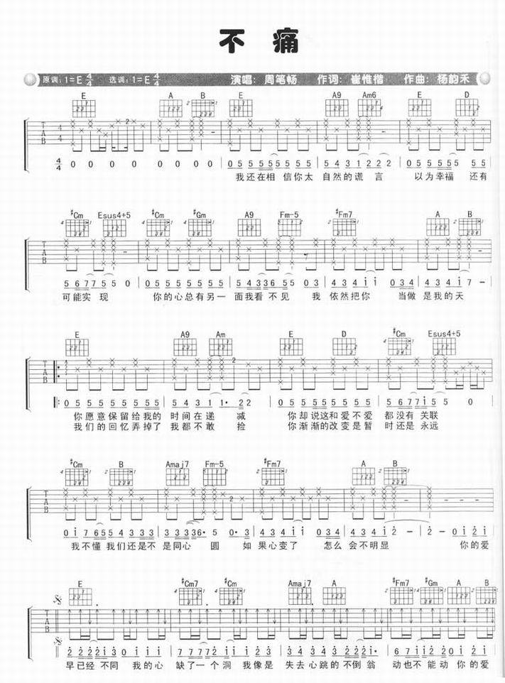 不痛-周笔畅(吉他谱 吉他曲谱 吉他六线谱 吉他歌谱 吉它谱 影视吉他谱)