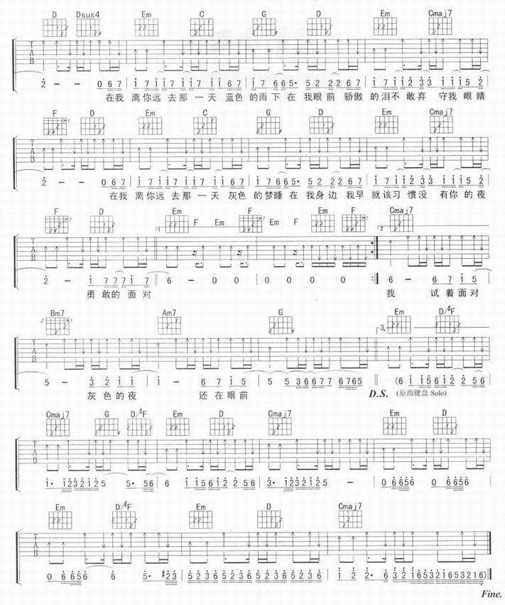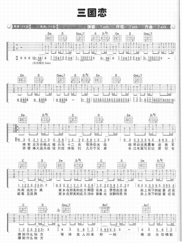 三国恋-tank(吉他谱 吉他曲谱 吉他六线谱 吉他歌谱 吉它谱 影视吉他谱)