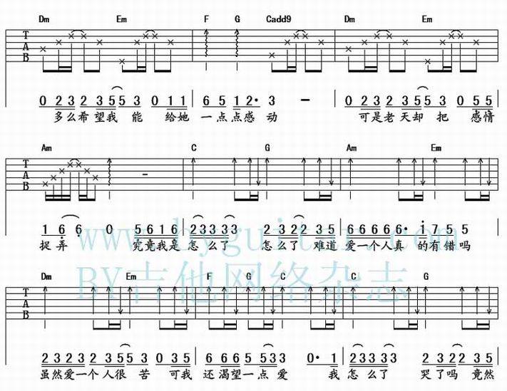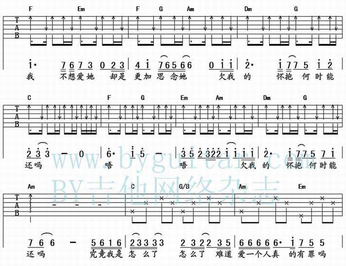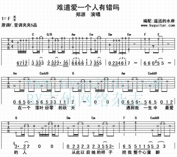 难道爱一个人有错吗-郑源(吉他谱 吉他曲谱 吉他六线谱 吉他歌谱 吉它谱 影视吉他谱)