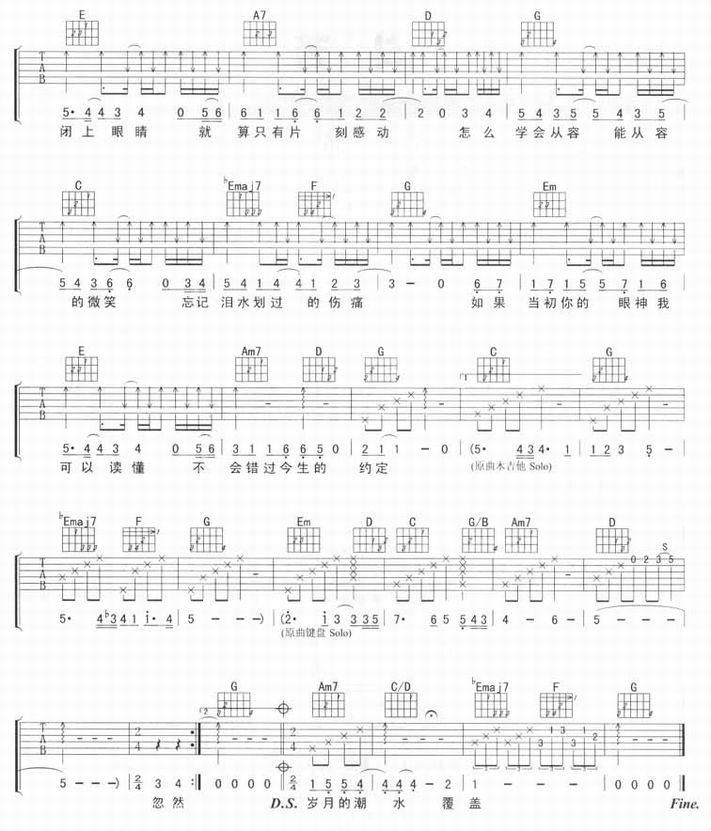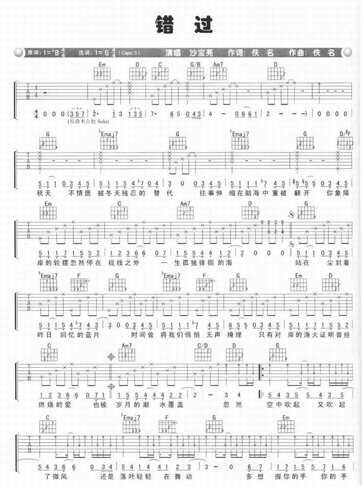 错过-沙宝亮(吉他谱 吉他曲谱 吉他六线谱 吉他歌谱 吉它谱 影视吉他谱)