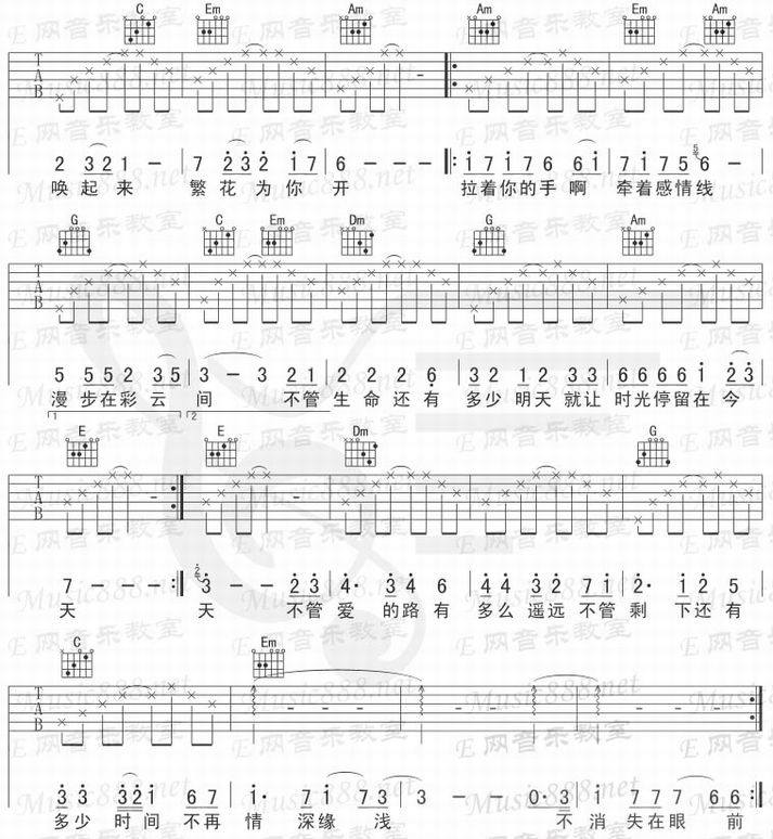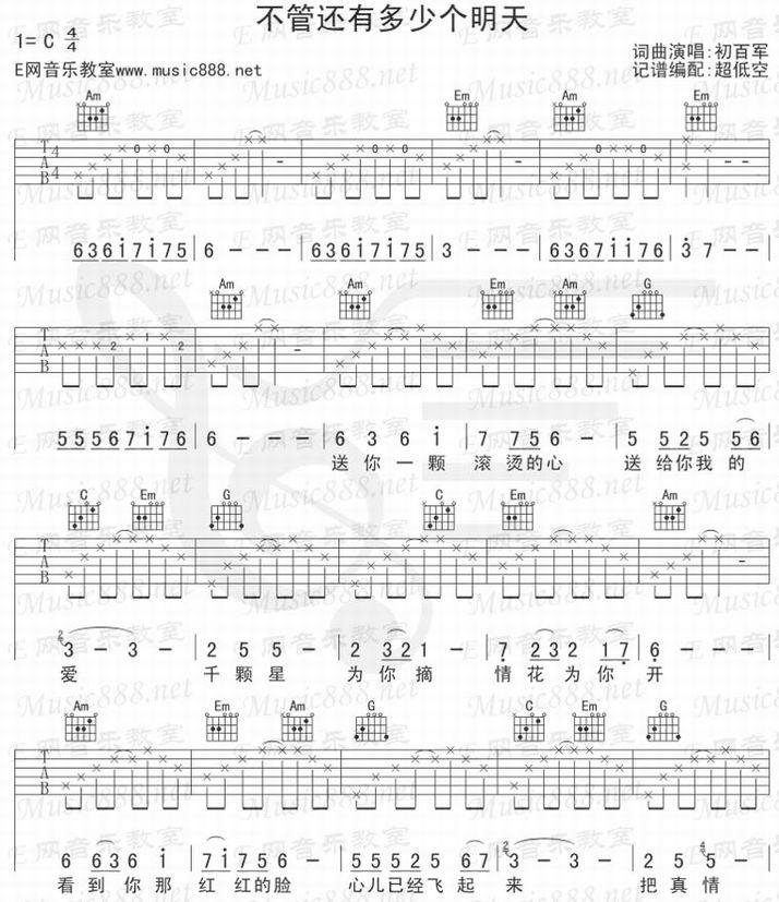 不管还有多少个明天-初百军(吉他谱 吉他曲谱 吉他六线谱 吉他歌谱 吉它谱 影视吉他谱)