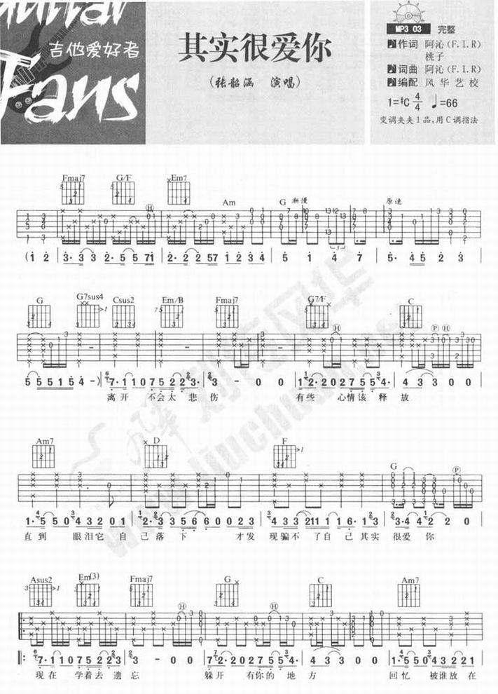 其实很爱你-张韶涵(吉他谱 吉他曲谱 吉他六线谱 吉他歌谱 吉它谱 影视吉他谱)