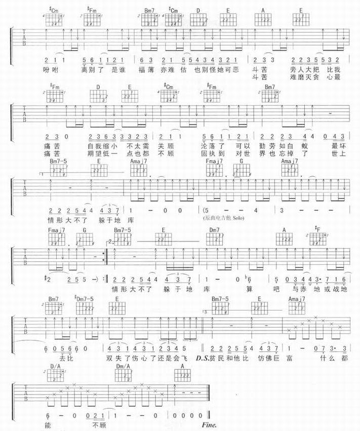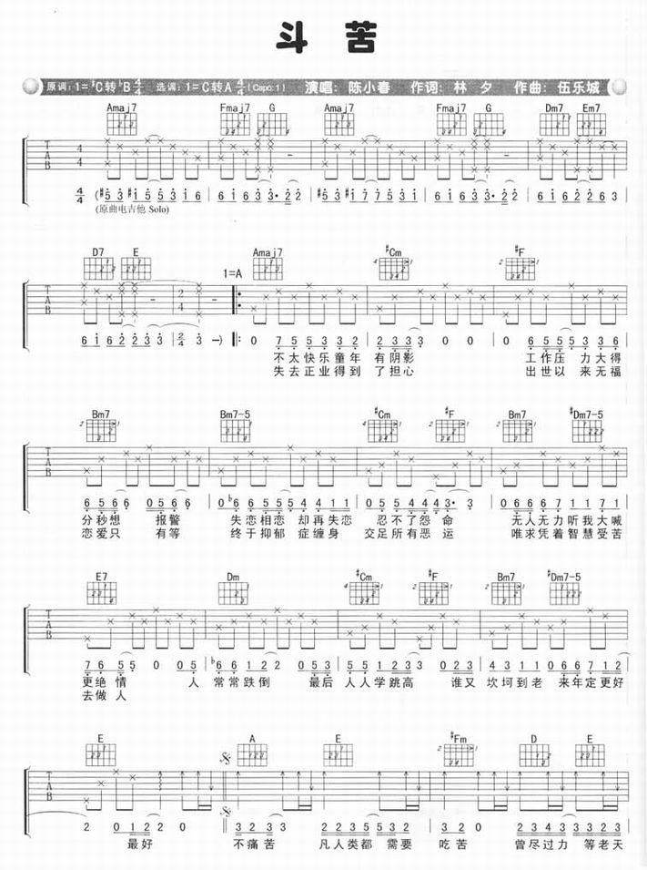 斗苦-陈小春(吉他谱 吉他曲谱 吉他六线谱 吉他歌谱 吉它谱 影视吉他谱)