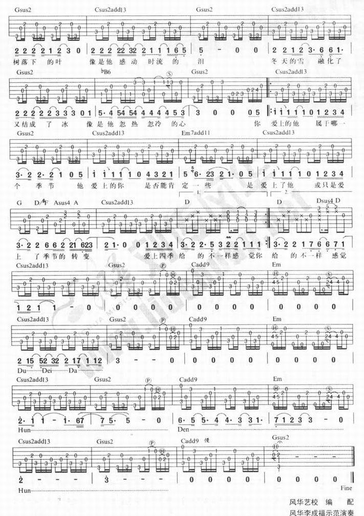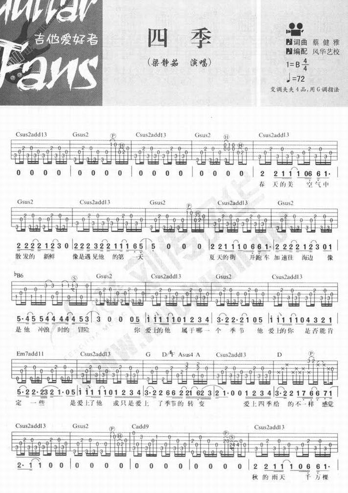四季-梁静茹(吉他谱 吉他曲谱 吉他六线谱 吉他歌谱 吉它谱 影视吉他谱)