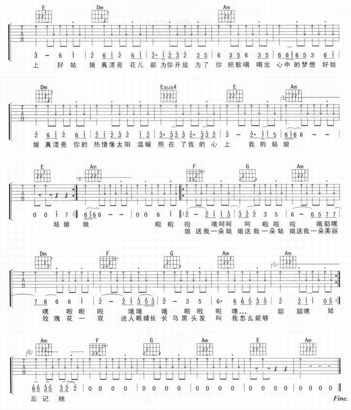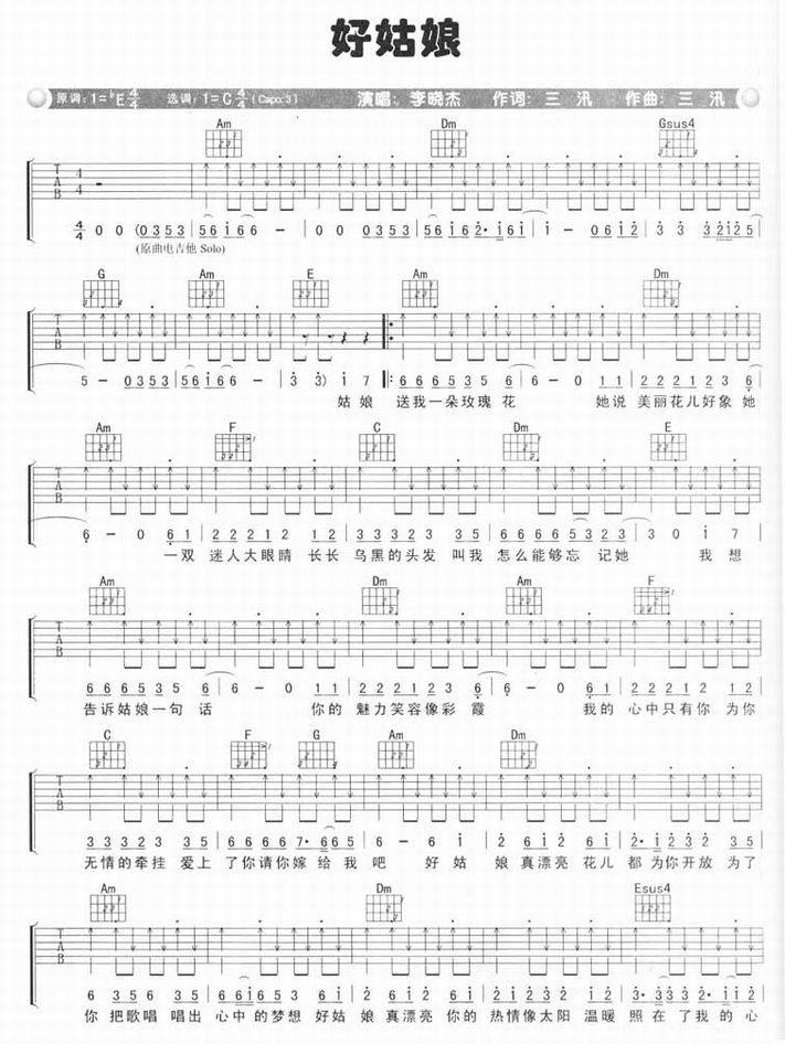 好姑娘-李晓杰(吉他谱 吉他曲谱 吉他六线谱 吉他歌谱 吉它谱 影视吉他谱)