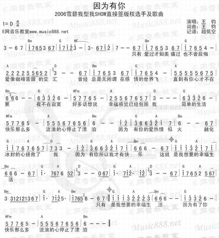 因为有你-王钧 周丹(简谱 歌谱 歌曲简谱 合唱简谱 影视简谱)