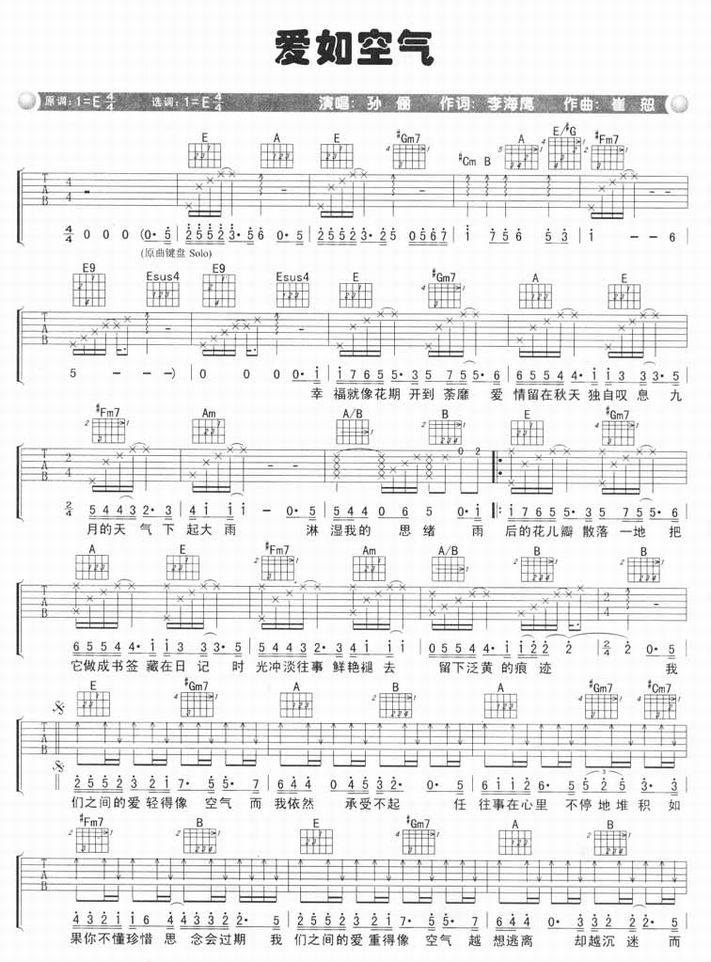 爱如空气-孙俪(吉他谱 吉他曲谱 吉他六线谱 吉他歌谱 吉它谱 影视吉他谱)