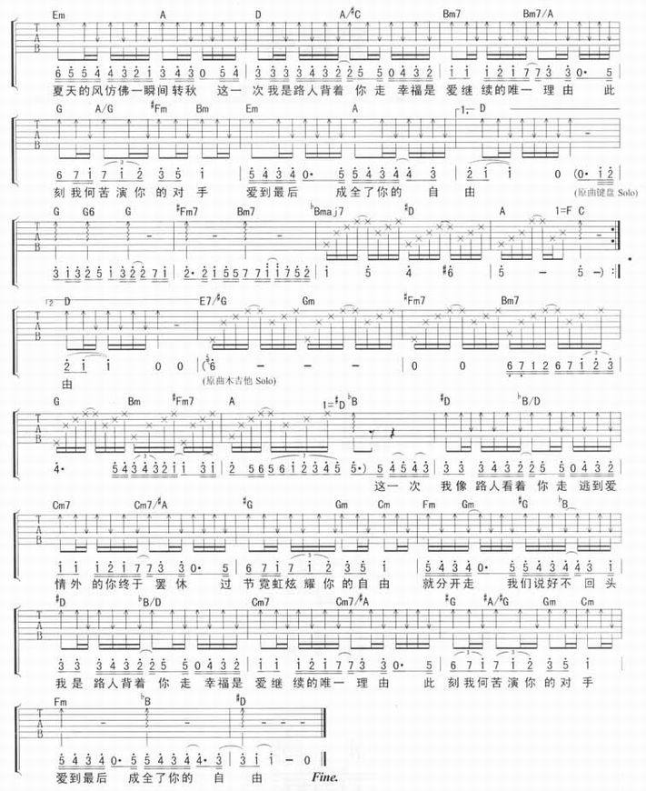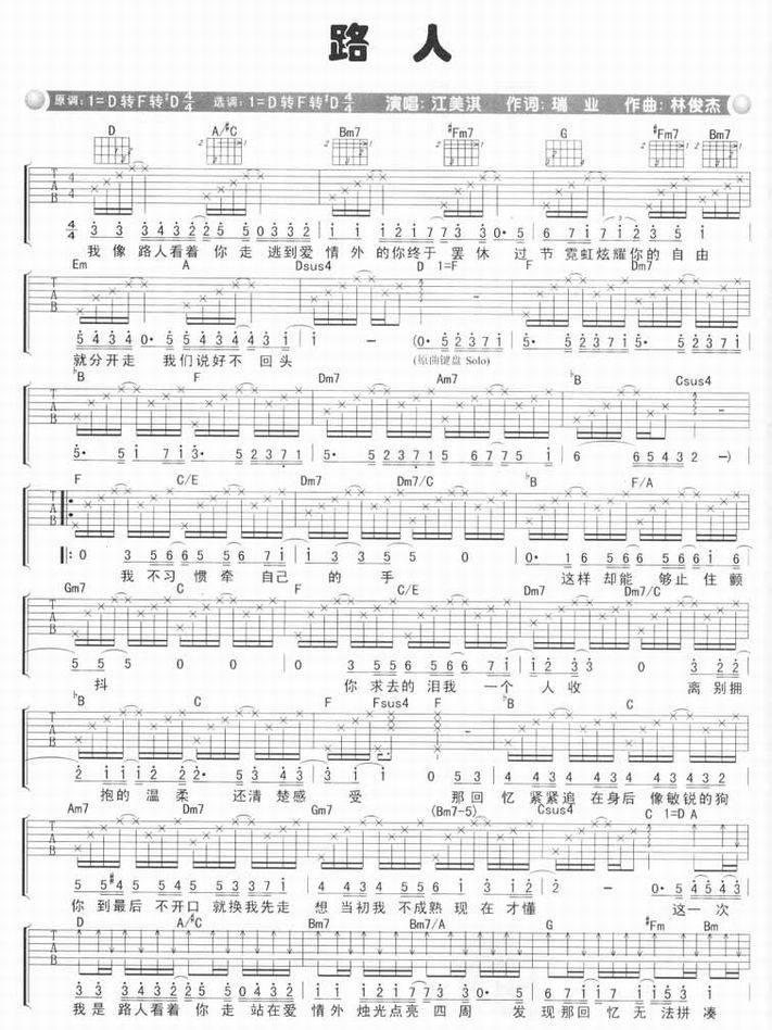 路人-江美琪(吉他谱 吉他曲谱 吉他六线谱 吉他歌谱 吉它谱 影视吉他谱)