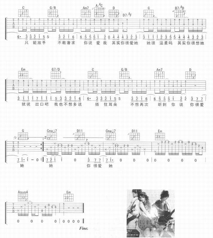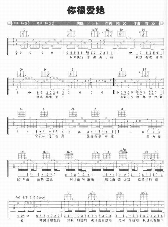你很爱他-f.i.r(吉他谱 吉他曲谱 吉他六线谱 吉他歌谱 吉它谱 影视吉他谱)