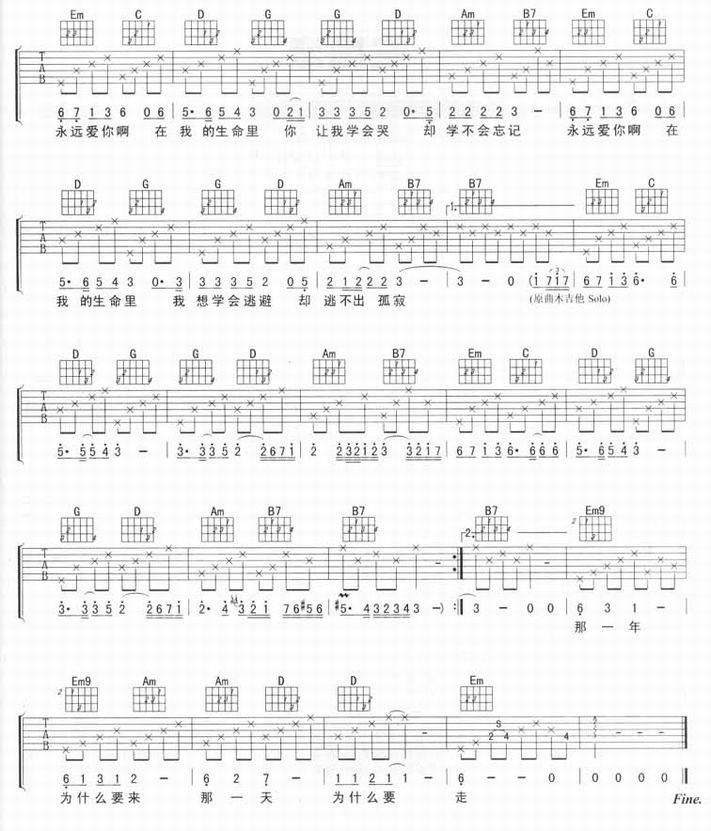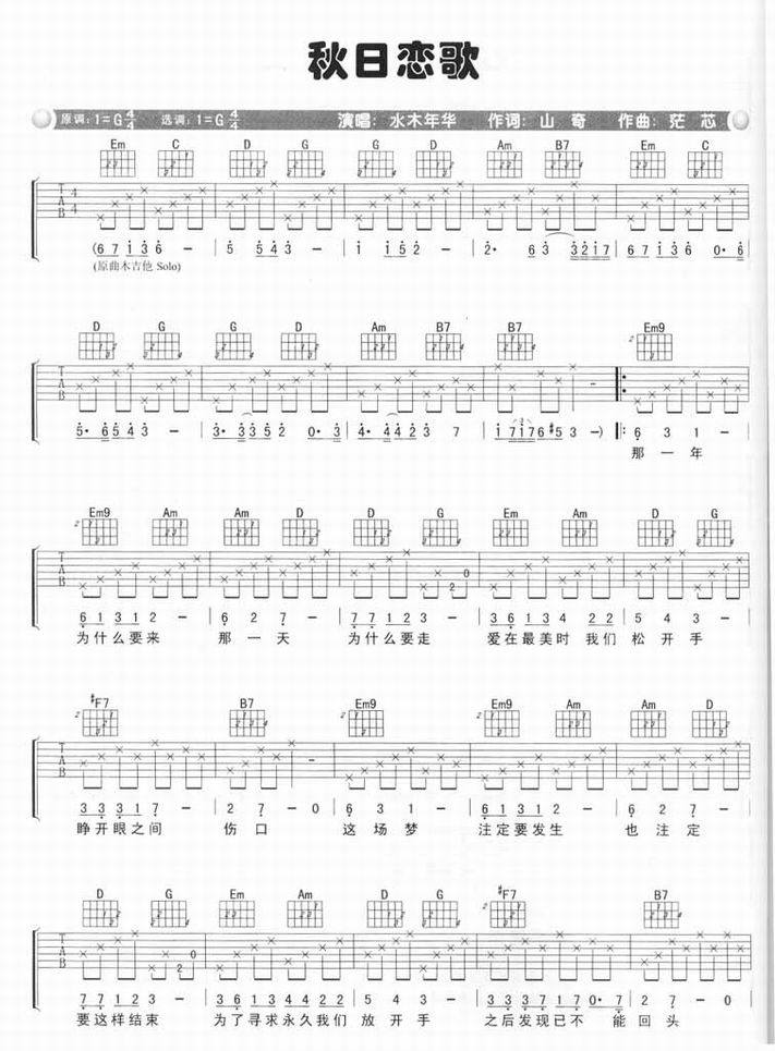 秋日恋歌-水木年华(吉他谱 吉他曲谱 吉他六线谱 吉他歌谱 吉它谱 影视吉他谱)