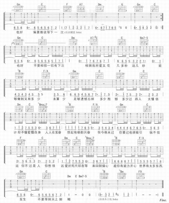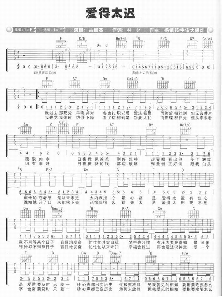 爱的太迟-古巨基(吉他谱 吉他曲谱 吉他六线谱 吉他歌谱 吉它谱 影视吉他谱)