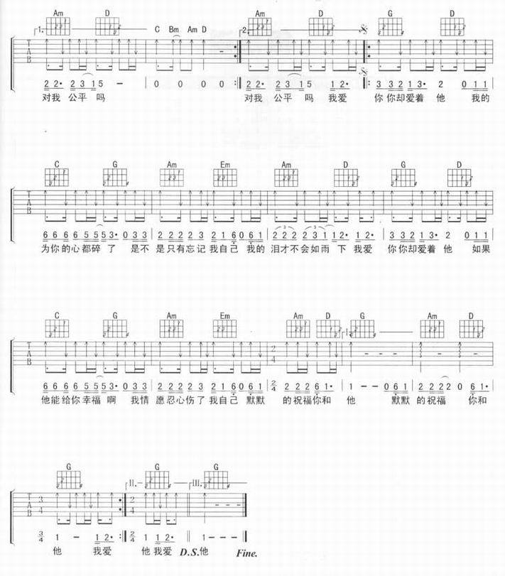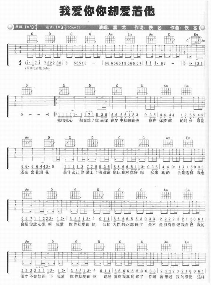 我爱你你却爱着他-黑龙(吉他谱 吉他曲谱 吉他六线谱 吉他歌谱 吉它谱 影视吉他谱)