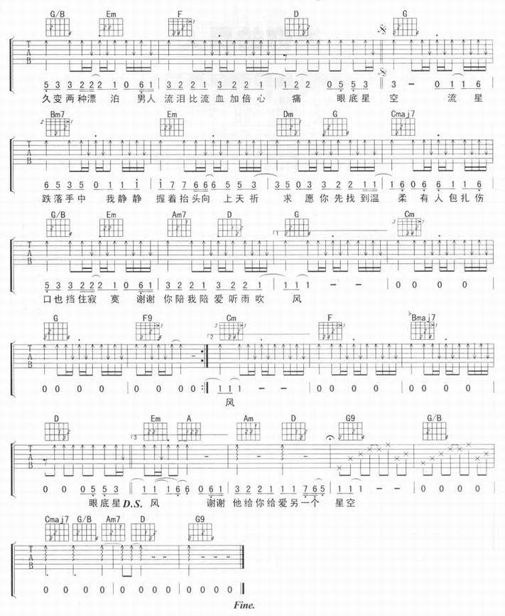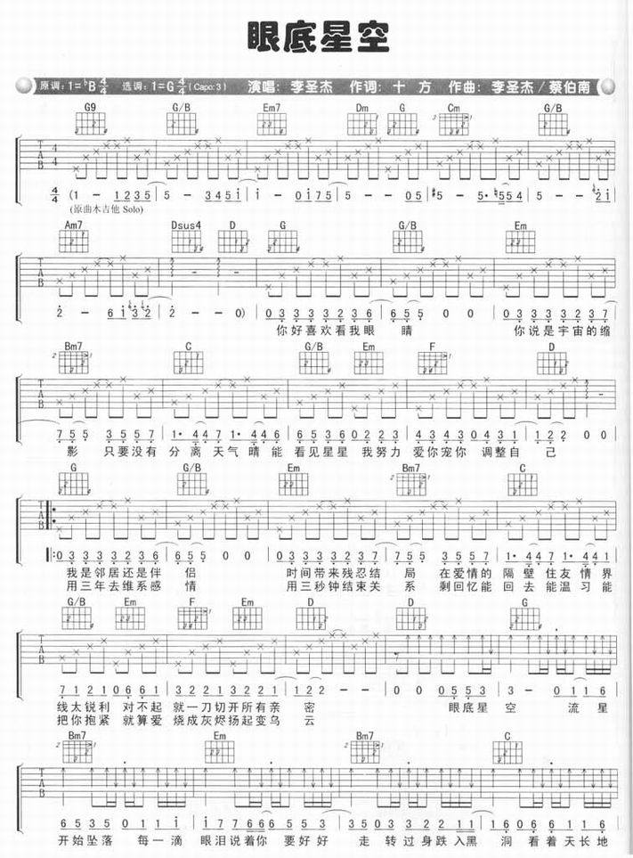 眼底星空-李圣杰(吉他谱 吉他曲谱 吉他六线谱 吉他歌谱 吉它谱 影视吉他谱)