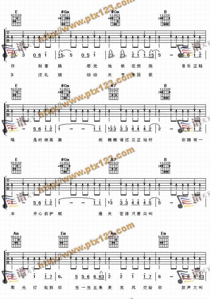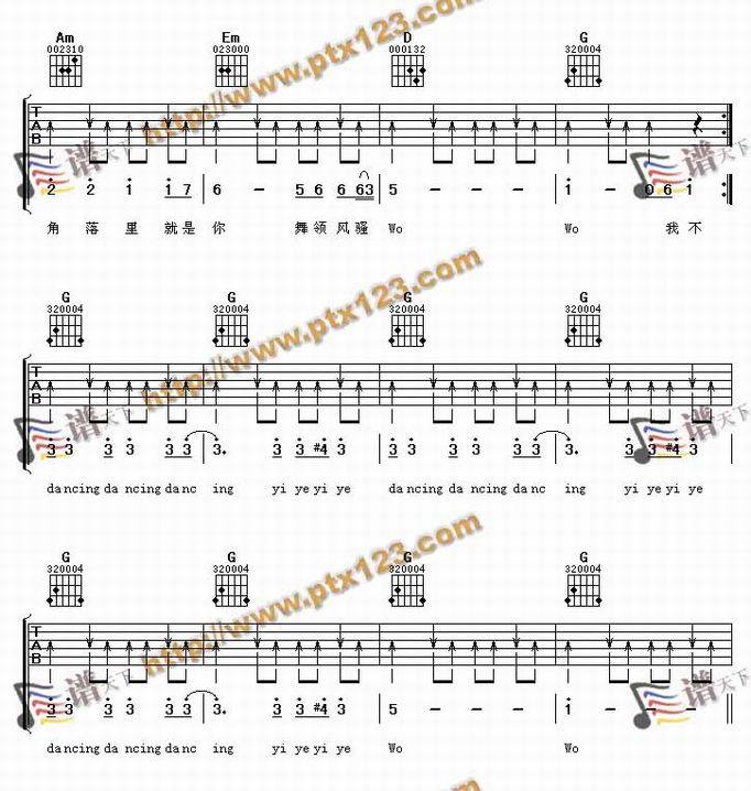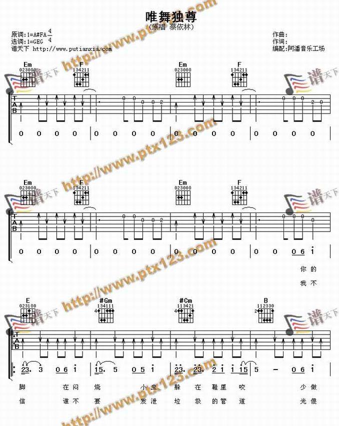 唯舞独尊-蔡依林(吉他谱 吉他曲谱 吉他六线谱 吉他歌谱 吉它谱 影视吉他谱)