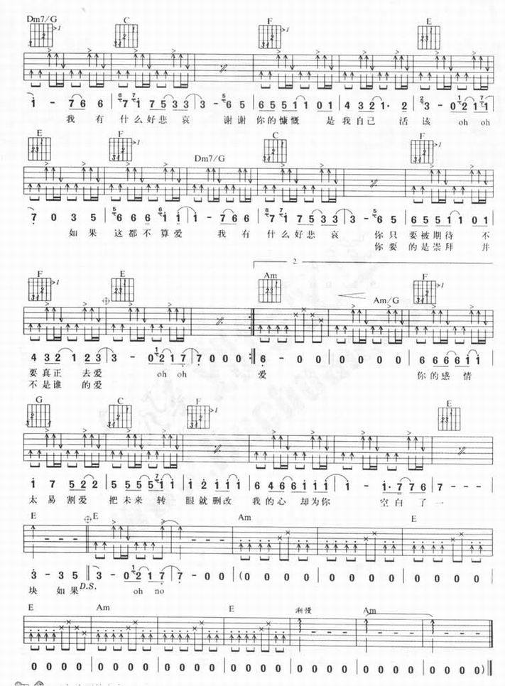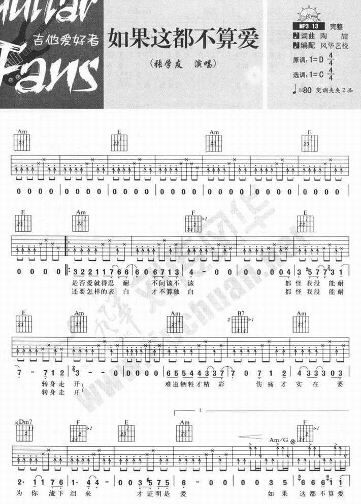 如果这都不算爱-张学友(吉他谱 吉他曲谱 吉他六线谱 吉他歌谱 吉它谱 影视吉他谱)