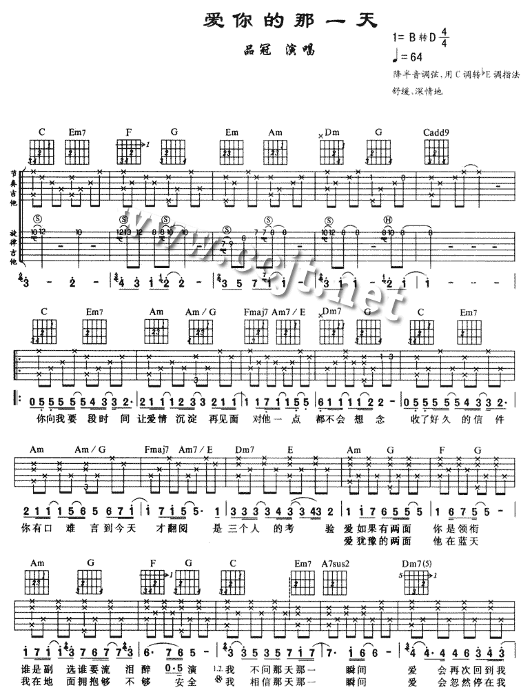 爱你的那一天-品冠(吉他谱 吉他曲谱 吉他六线谱 吉他歌谱 吉它谱 影视吉他谱)