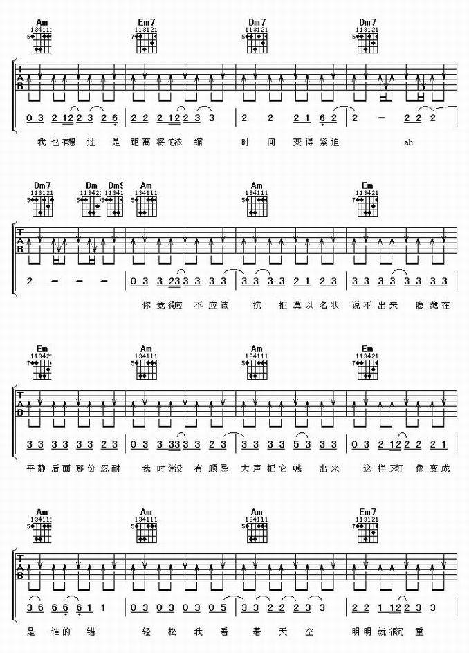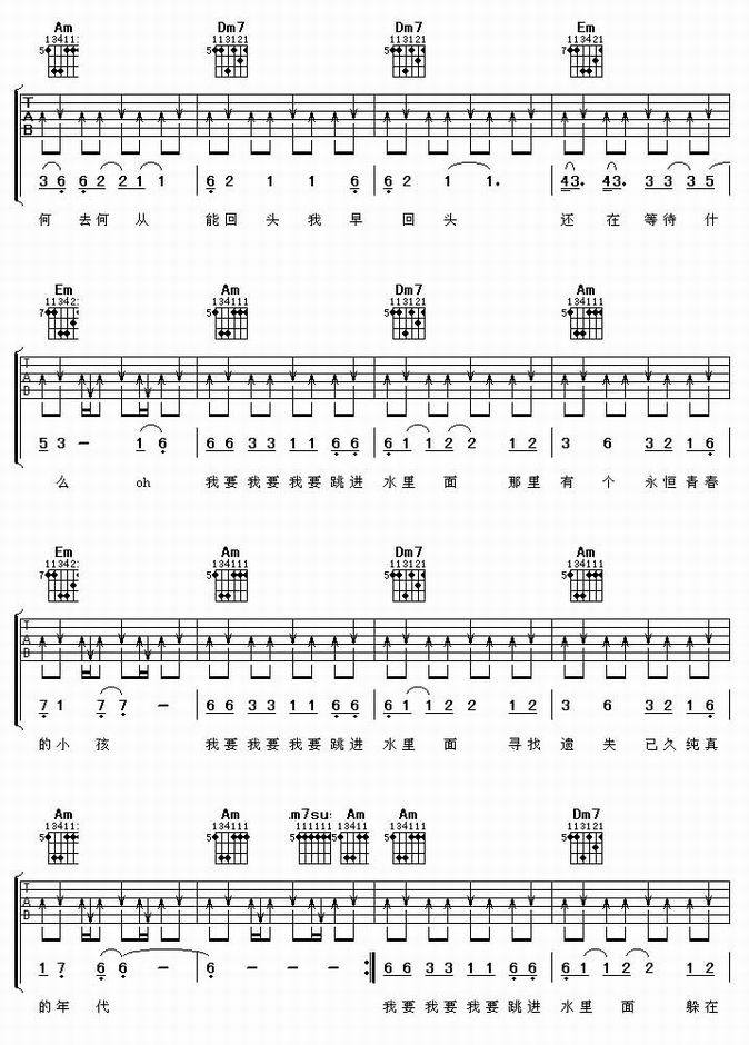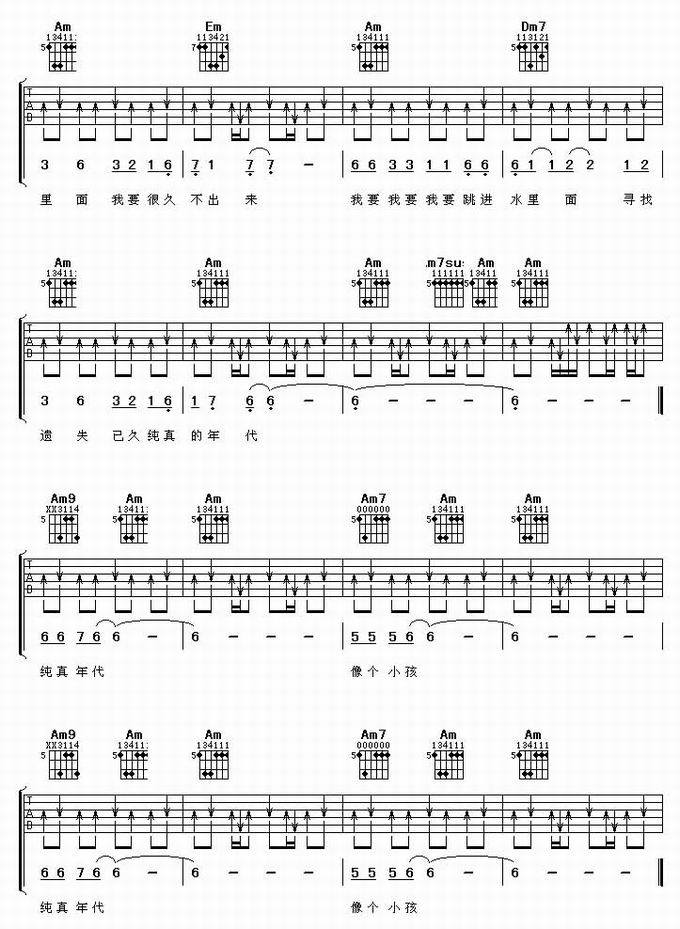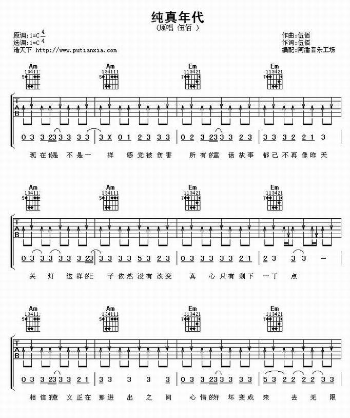 纯真年代-伍佰(吉他谱 吉他曲谱 吉他六线谱 吉他歌谱 吉它谱 影视吉他谱)