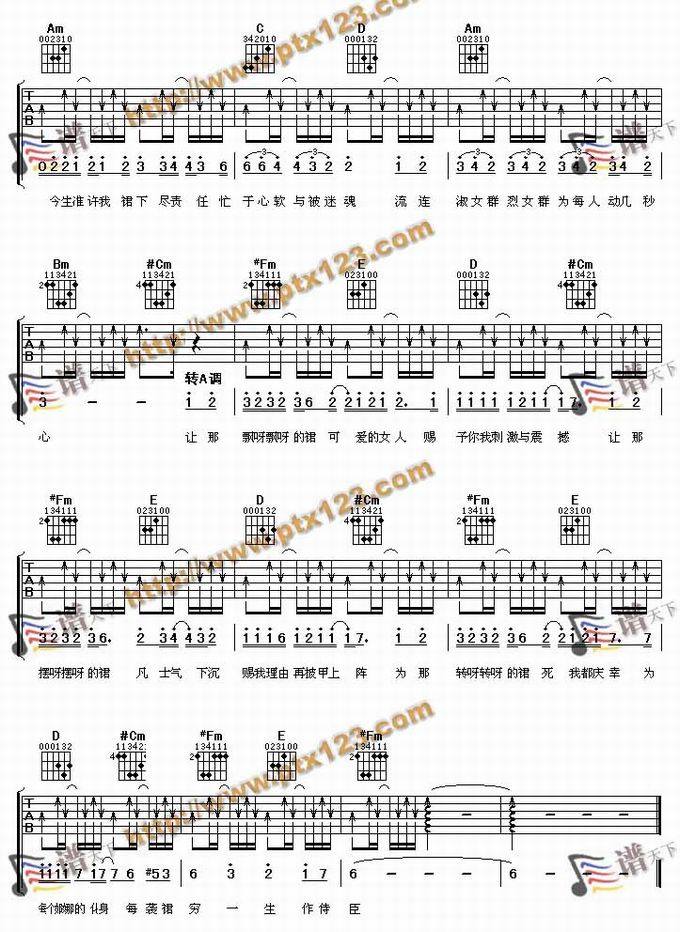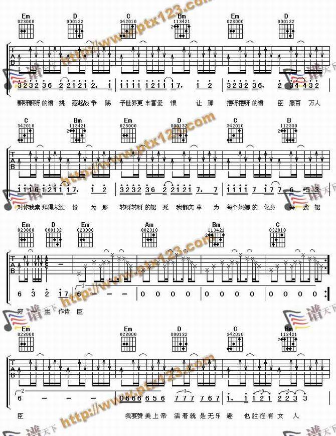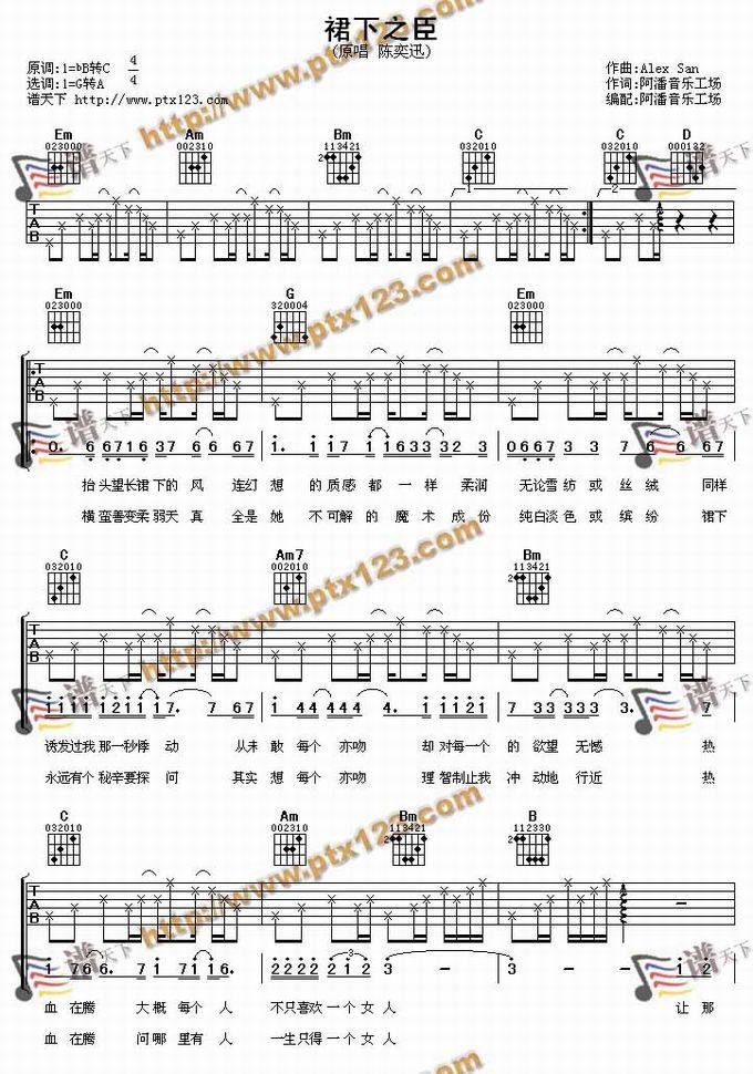 裙下之臣-陈奕迅(吉他谱 吉他曲谱 吉他六线谱 吉他歌谱 吉它谱 影视吉他谱)