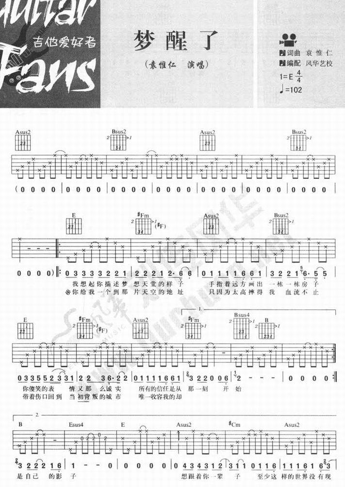 梦醒了-袁惟仁(吉他谱 吉他曲谱 吉他六线谱 吉他歌谱 吉它谱 影视吉他谱)