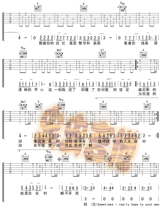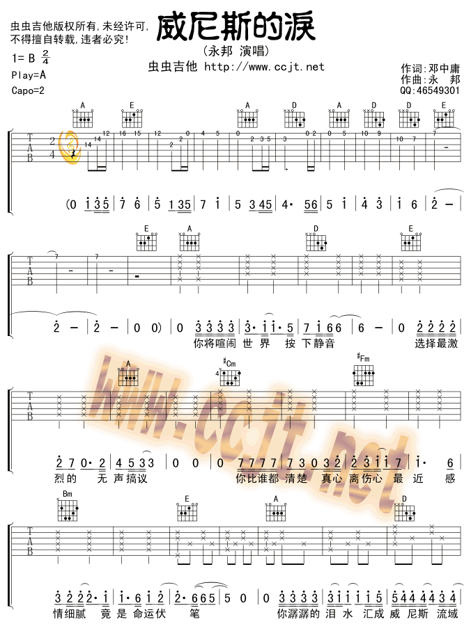 威尼斯的泪-永邦(吉他谱 吉他曲谱 吉他六线谱 吉他歌谱 吉它谱 影视吉他谱)