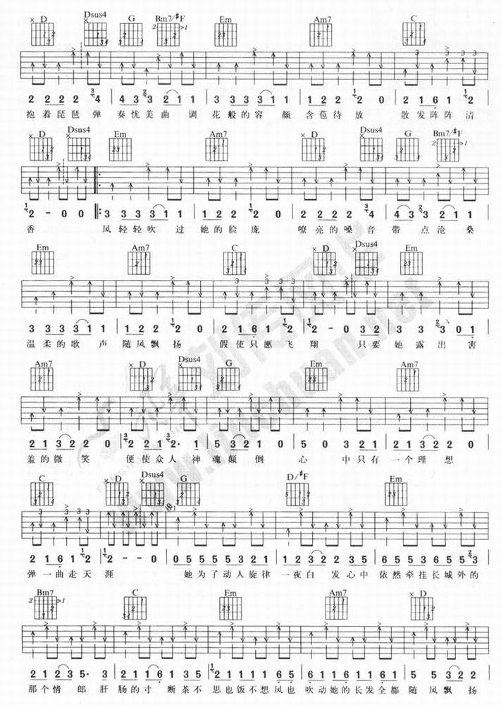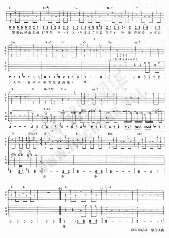 琵琶女-黄品源(吉他谱 吉他曲谱 吉他六线谱 吉他歌谱 吉它谱 影视吉他谱)