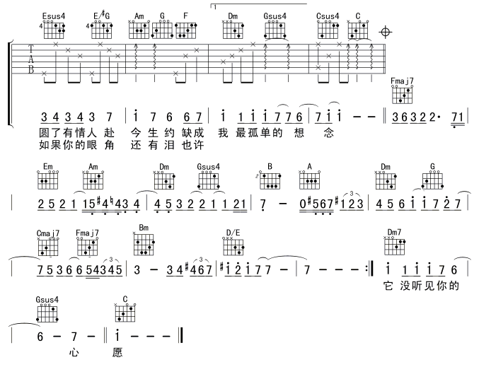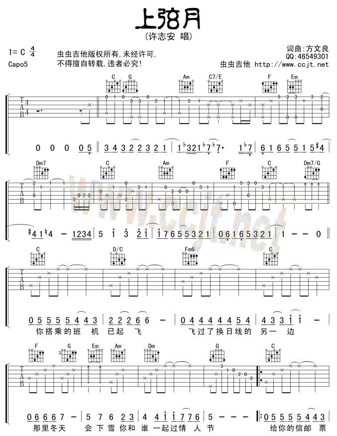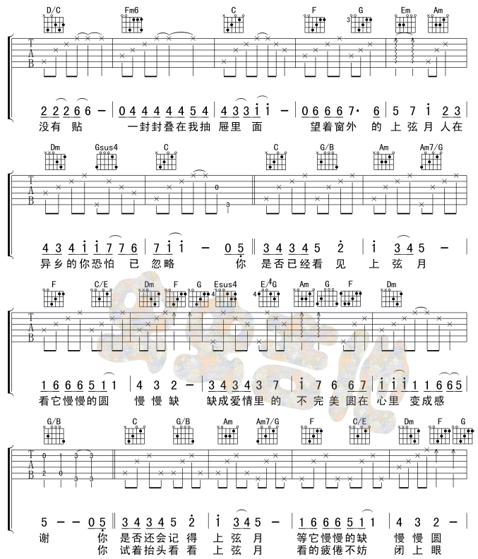 上弦月-许志安(吉他谱 吉他曲谱 吉他六线谱 吉他歌谱 吉它谱 影视吉他谱)
