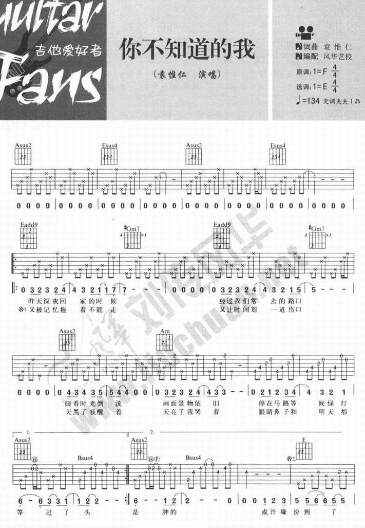 你不知道的我-袁惟仁(吉他谱 吉他曲谱 吉他六线谱 吉他歌谱 吉它谱 影视吉他谱)