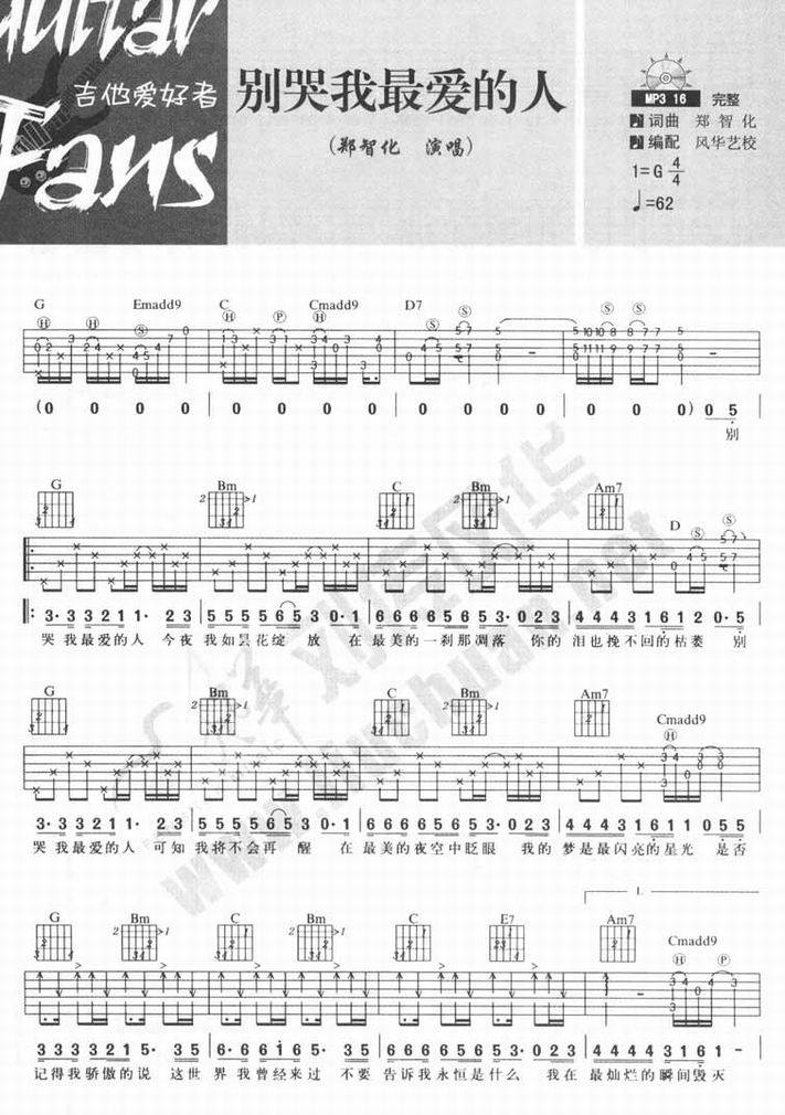 别哭我最爱的人-郑智化(吉他谱 吉他曲谱 吉他六线谱 吉他歌谱 吉它谱 影视吉他谱)