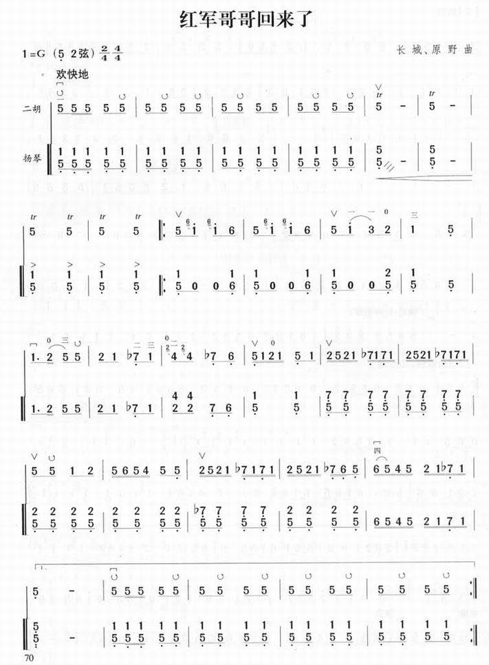 红军哥哥回来了-张长城(二胡曲谱 二胡曲 二胡独奏 二胡音乐 二胡简谱)