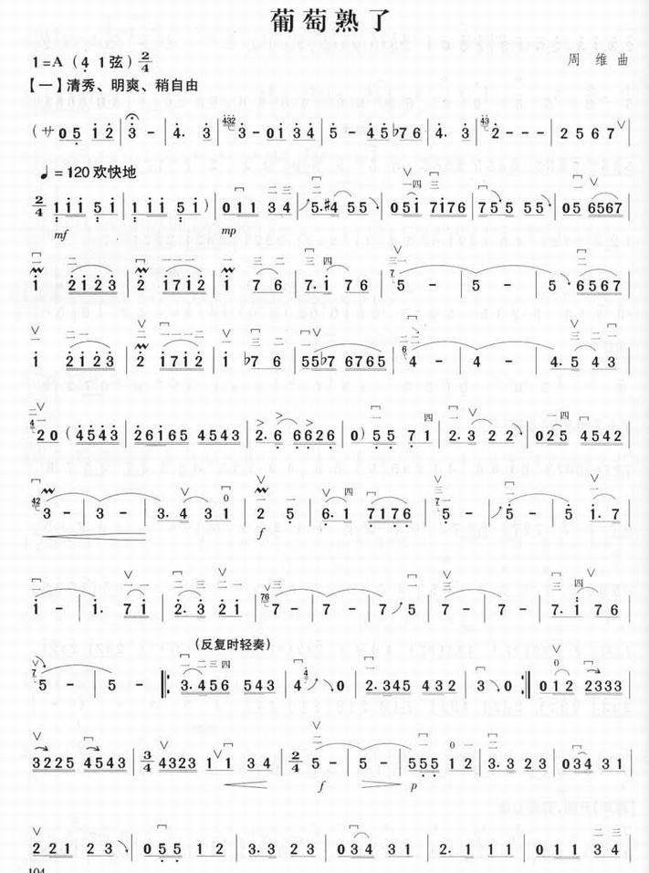 葡萄熟了-周维(二胡曲谱 二胡曲 二胡独奏 二胡音乐 二胡简谱)