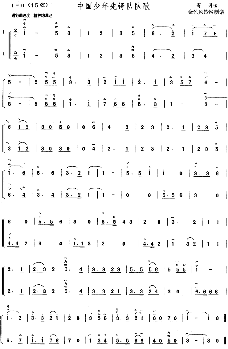 中国少年先锋队队歌(二胡曲谱 二胡曲 二胡独奏 二胡音乐 二胡简谱)