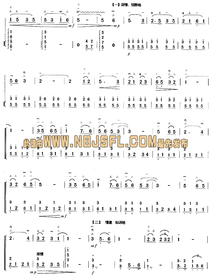 听妈妈讲那过去的事情(二胡曲谱 二胡曲 二胡独奏 二胡音乐 二胡简谱)