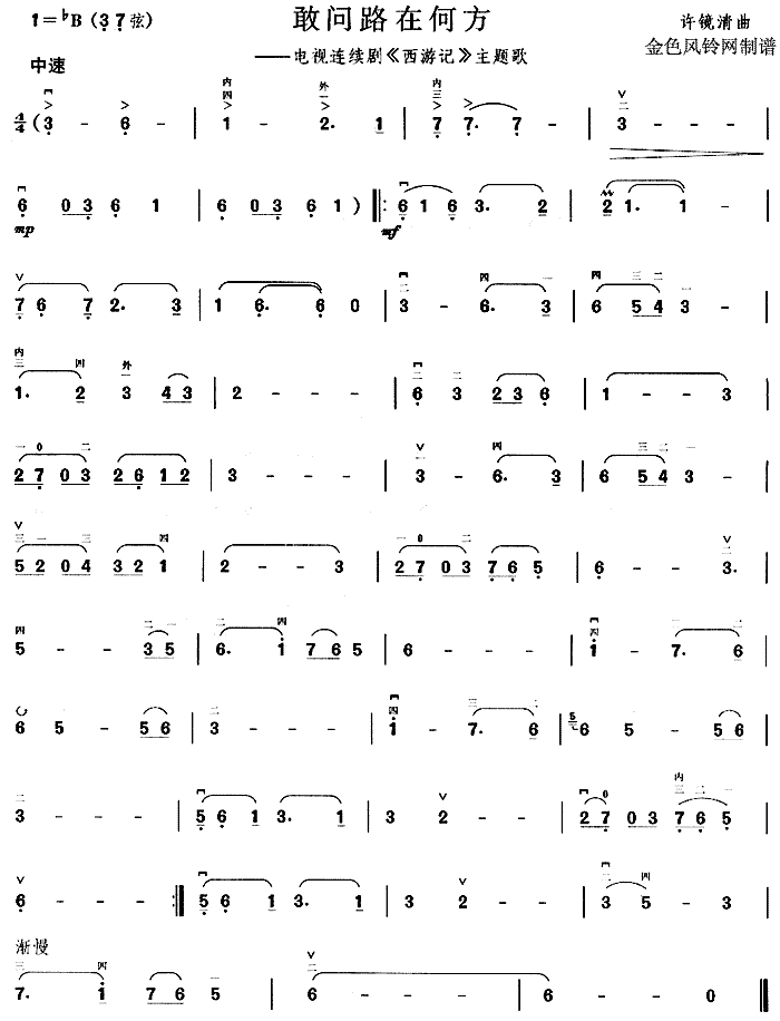 敢问路在何方-西游记(二胡曲谱 二胡曲 二胡独奏 二胡音乐 二胡简谱)