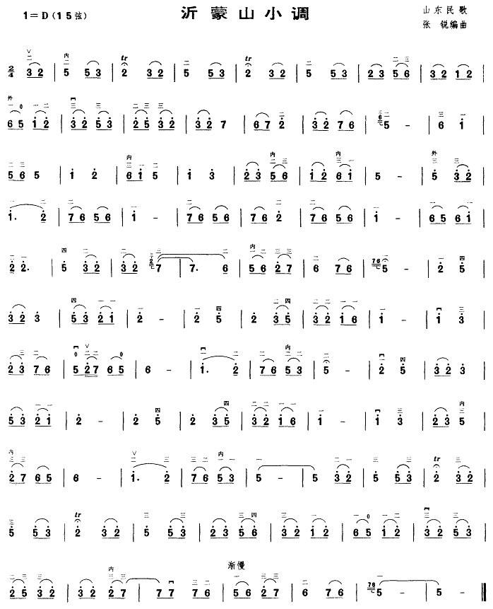 沂蒙山小调-山东民歌(二胡曲谱 二胡曲 二胡独奏 二胡音乐 二胡简谱)