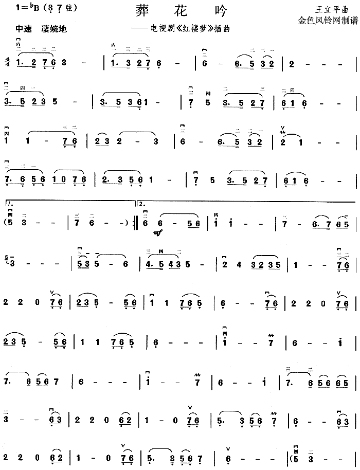 葬花吟-红楼梦插曲(二胡曲谱 二胡曲 二胡谱 二胡独奏 二胡音乐 二胡简谱)