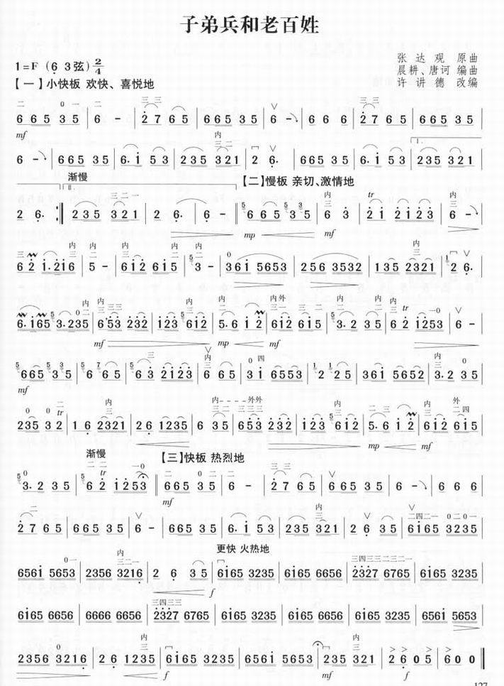 子弟兵和老百姓-许讲德(二胡曲谱 二胡曲 二胡谱 二胡独奏 二胡音乐 二胡简谱)