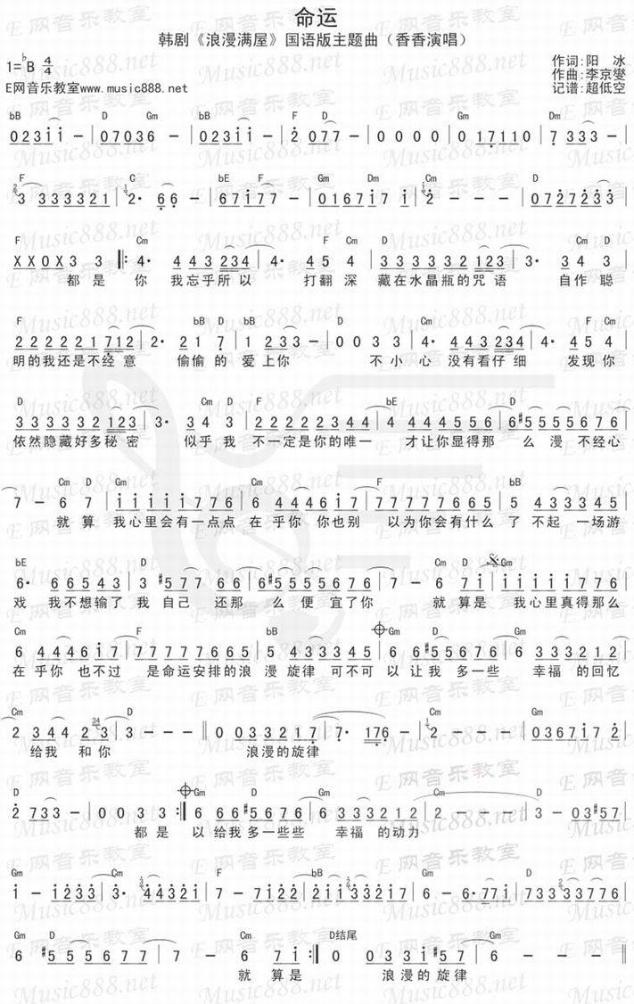 命运-香香(简谱 歌谱 歌曲简谱 合唱简谱 影视简谱)
