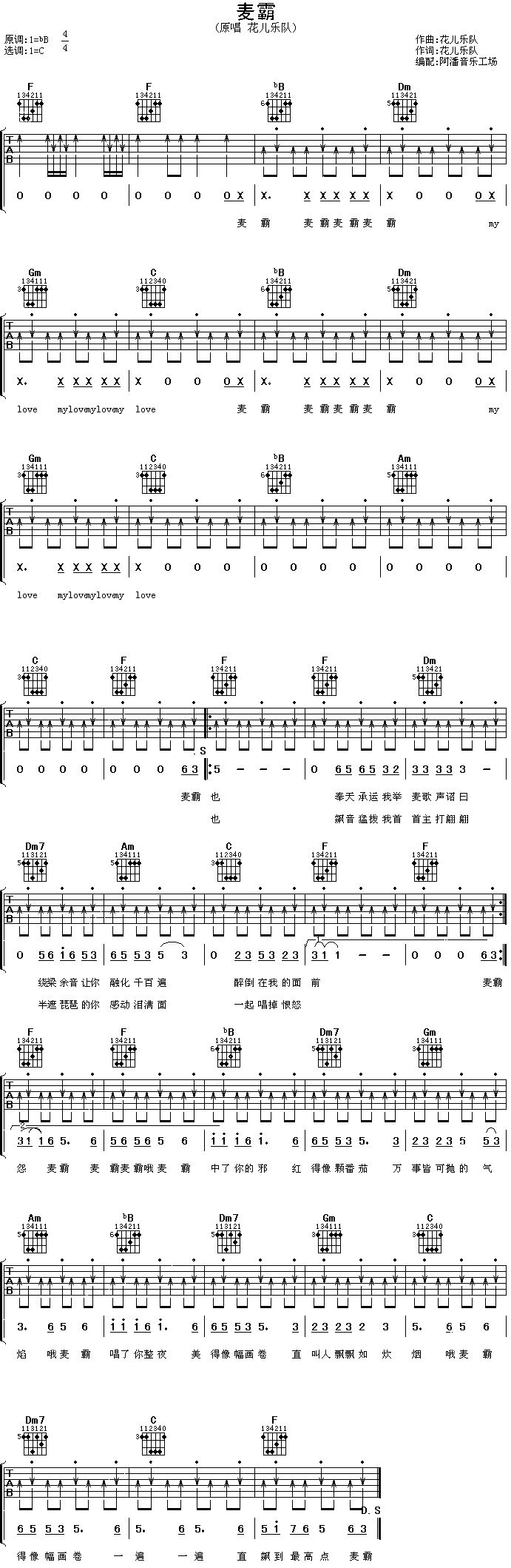 麦霸-花儿乐队(吉他谱 吉他曲谱 吉他六线谱 吉他歌谱 吉它谱 吉他简谱 吉他乐谱)
