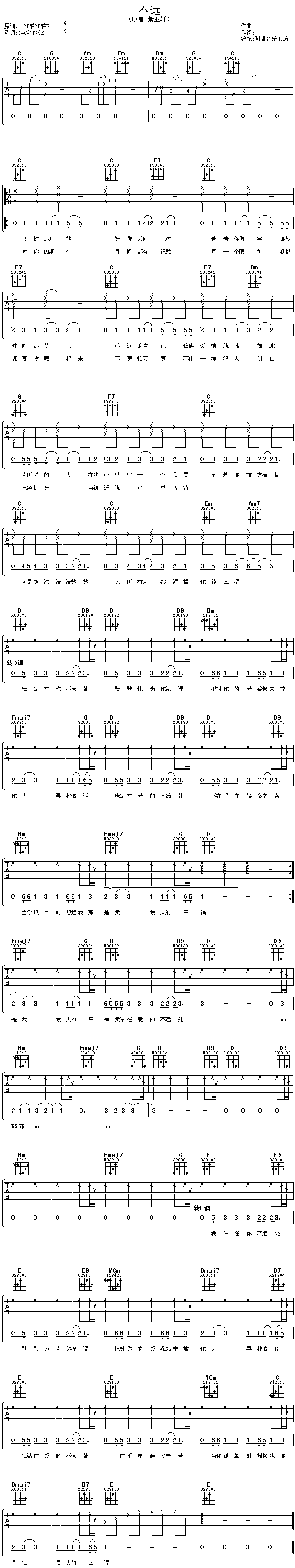 不远-萧亚轩(吉他谱 吉他曲谱 吉他六线谱 吉他歌谱 吉它谱 吉他简谱 吉他乐谱)