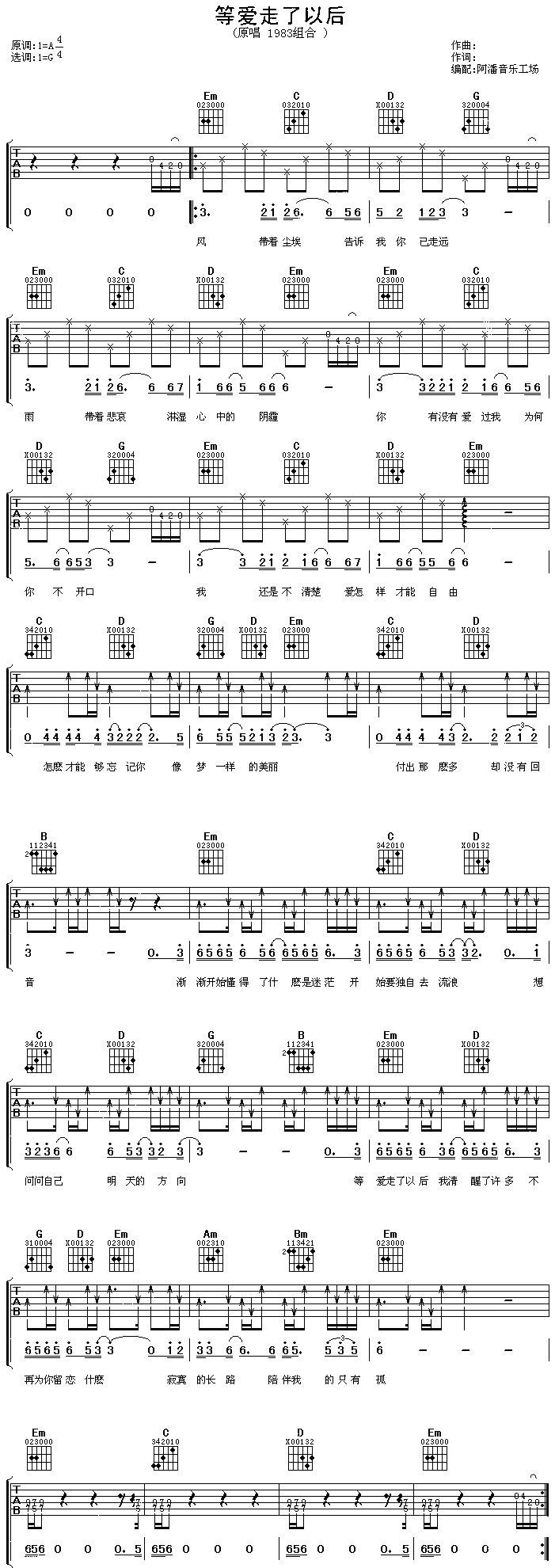 等爱走了以后-1983组合(吉他谱 吉他曲谱 吉他六线谱 吉他歌谱 吉它谱 吉他简谱 吉他乐谱)