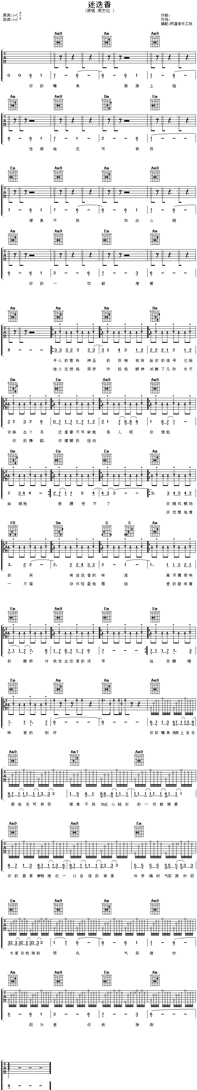 迷迭香-周杰伦(吉他谱 吉他曲谱 吉他六线谱 吉他歌谱 吉它谱 吉他简谱 吉他乐谱)