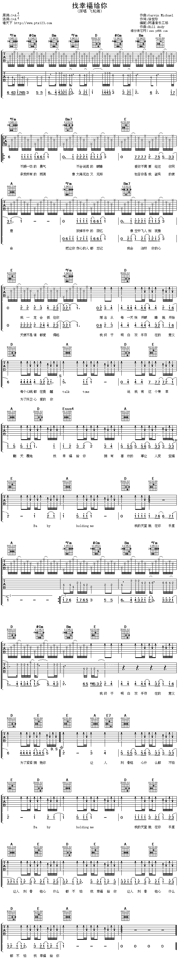 找幸福给你-飞轮海(吉他谱 吉他曲谱 吉他六线谱 吉他歌谱 吉它谱 影视吉他谱)