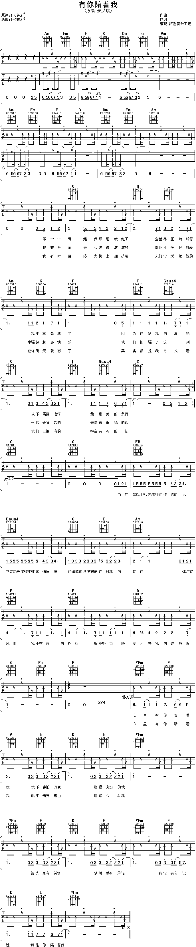 有你陪着我-安又琪(吉他谱 吉他曲谱 吉他六线谱 吉他歌谱 吉它谱 影视吉他谱)