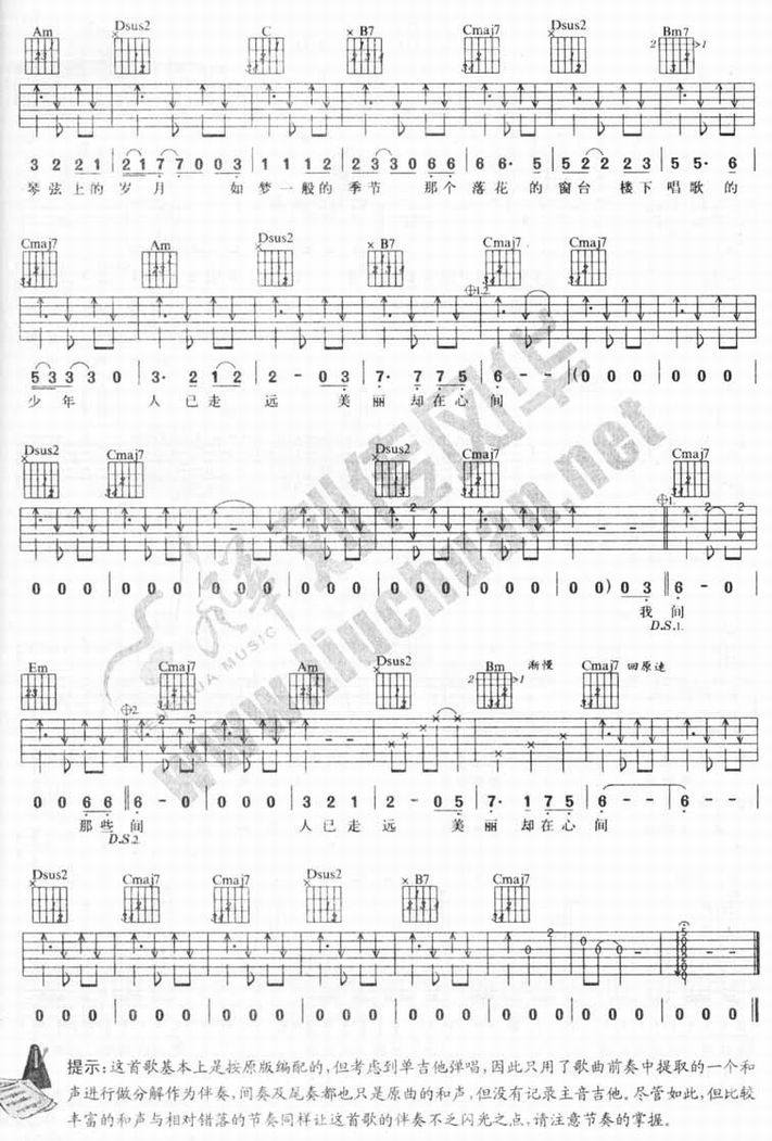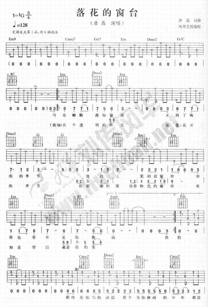 落花的窗台-唐磊(吉他谱 吉他曲谱 吉他六线谱 吉他歌谱 吉它谱 影视吉他谱)