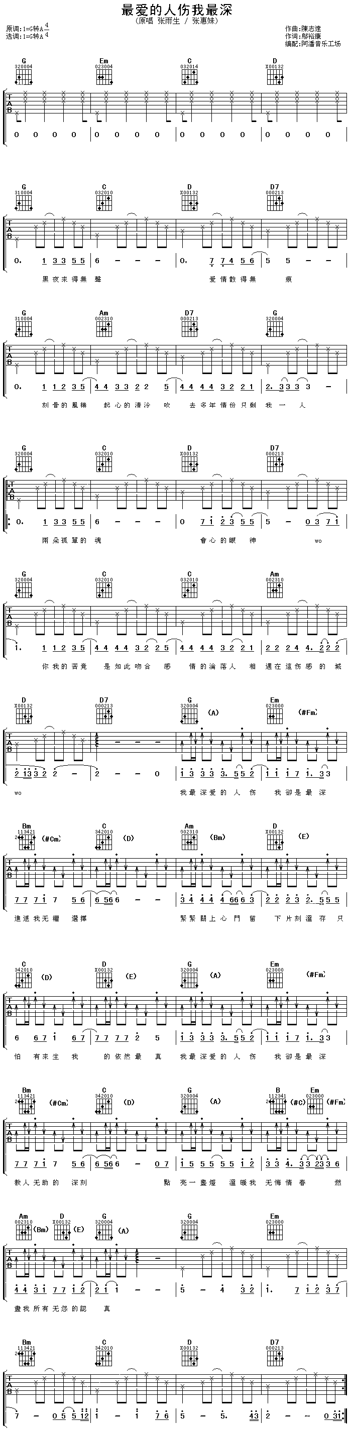 最爱的人伤我最深-张雨生 张惠妹(吉他谱 吉他曲谱 吉他六线谱 吉他歌谱 吉它谱 影视吉他谱)