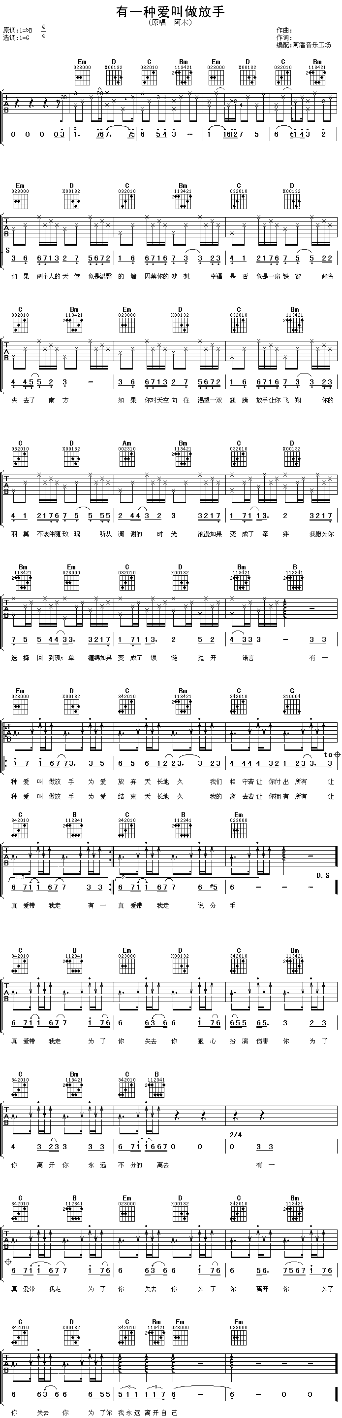 有一种爱叫做放手-阿木(吉他谱 吉他曲谱 吉他六线谱 吉他歌谱 吉它谱 影视吉他谱)