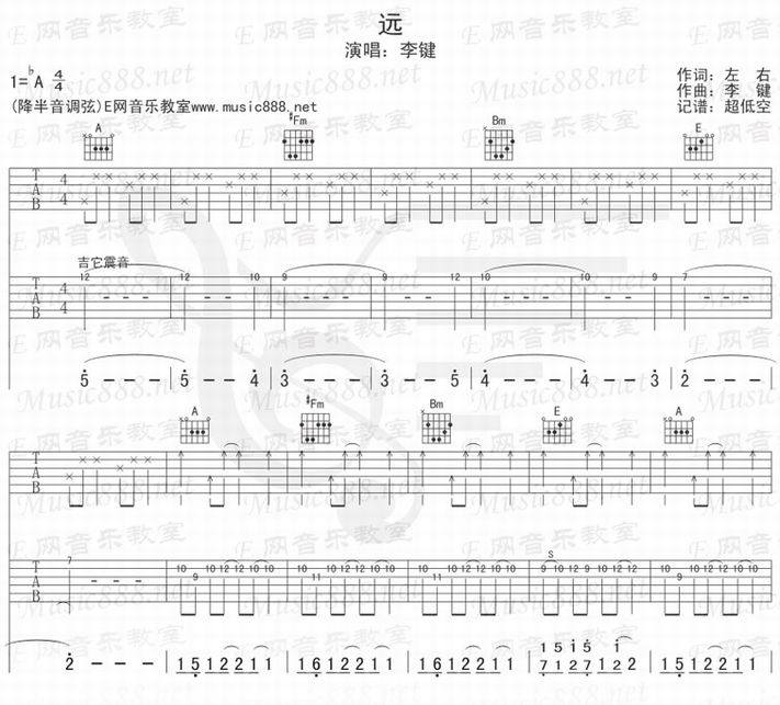 远-李健(吉他谱 吉他曲谱 吉他六线谱 吉他歌谱 吉它谱 影视吉他谱)